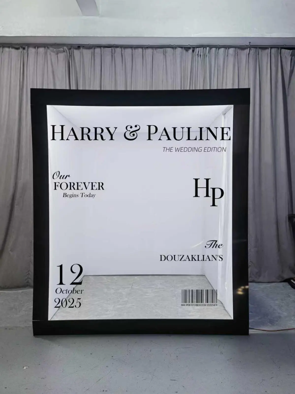 Guests can transform their photos into personalised magazine covers—complete with tailored text, branding, and stylish graphics.